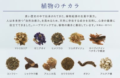 水分保持力に優れた、トウモロコシのデンプン由来の糖質・多糖類デキストリンと、13種類の植物エキスを配合。